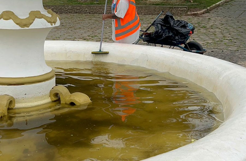 Chafariz recebe limpeza